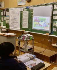 子どもたちは、Teamsを使って 教師が配信した実験の手順を確認し、実験に臨んでいました。