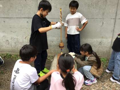 班で協力して火おこしを頑張っていました。
