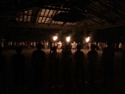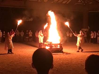実行委員の進行でキャンプファイヤーを行いました。各クラスの出し物を全員で楽しみました。3年生のスポーツフェスティバルで踊った、青と夏を小林先生、かりん先生、古澤先生も参加して盛り上がりました。