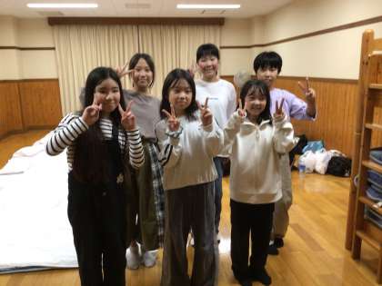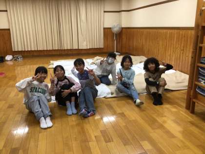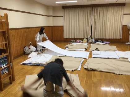 宿泊棟で自分の布団を準備しました。今は、入浴の時間です。