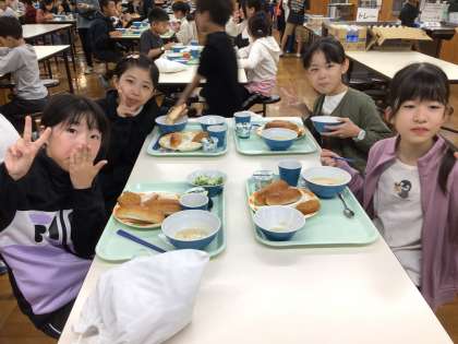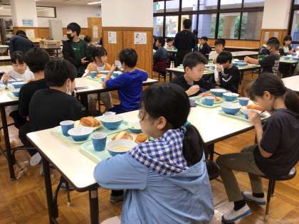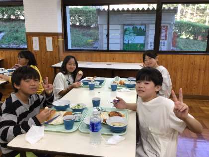 どんぐり食堂で朝食を食べました。おかわりをする子もいました。みんな元気です。