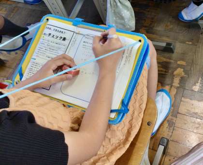 話し合いの様子をチエックする役割の子どもたちは、気づいたことを積極的にメモしていました。後の発表で、話し合いが止まった時に、意見をつなげたり、質問をしたりしていた子を賞賛していました。