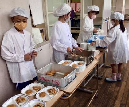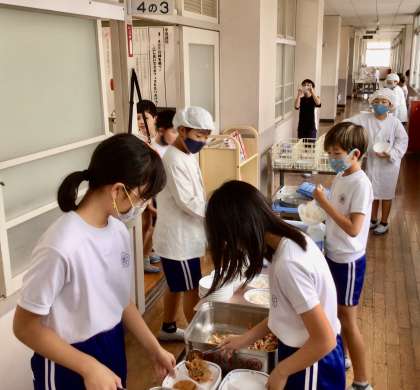 給食訪問。前期の最後を飾るのは 元気すぎる学年、4年生の皆さんです!