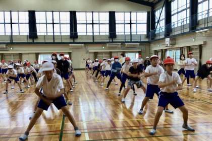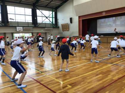 ついに高学年が体育館に集まって、はじめてのソーラン練習に汗を流しました。