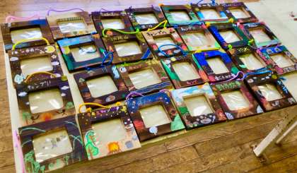 ワークスペースには、キャンプで作った写真立てが並んでいました♪