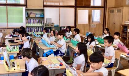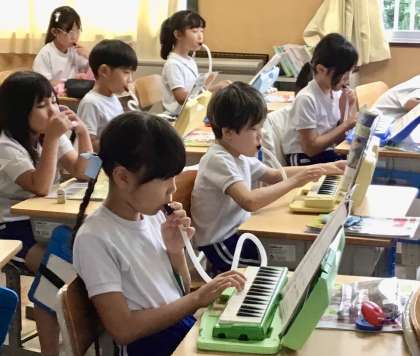 2組さんです。「山のポルカ」を鍵盤ハーモニカで演奏しています。