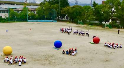 4年生の皆さんが「大玉運び」の初練習に挑みました!