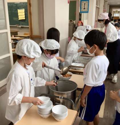 今日は 日に日にたのもしくなってきた1年生の給食風景をお届けいたします!