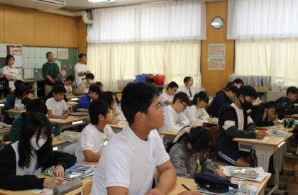 6年生では、1組が理科の「水溶液の性質を調べよう」、2組が社会の「武士の世の中へ」、3組が国語の「心の動きを俳句で表そう」の授業を見ていただきました。