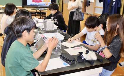 学習用タブレットやICT機器を使った協働的な学びの様子が随所に見られました。