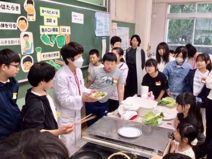 講師の先生からは、一日に必要な野菜の摂取量や、調理を通して食べやすくする工夫などを教えていただきました。これからの食生活にいかしていけそうです。