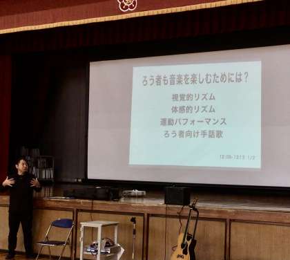 講師のデフギタリストさんは、海外でも演奏活動をしてみえて、耳が聞こえなくても音楽を通じて、聞いてくれる方と心が通じ合うことの喜びを話されました。