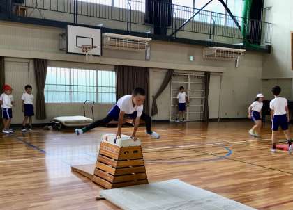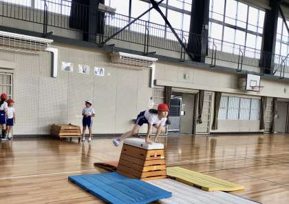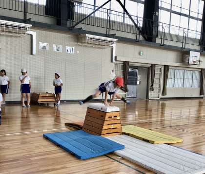 1組の跳び箱の授業です。