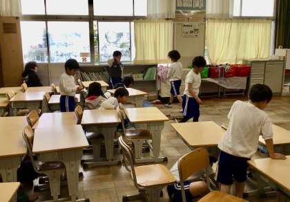 今日は、給食後から清掃に移る時間帯に 抜き打ちのシェイクアウト訓練を行いました。