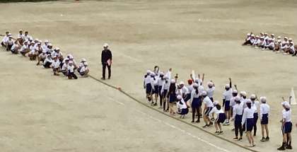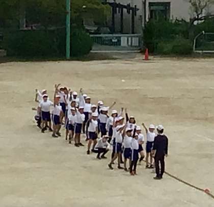 やや肌寒いなか、5年生が初めての綱引き練習に取り組みました!