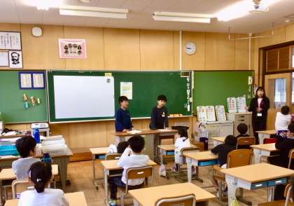 5年生の給食委員が説明して、みんなで手拍子を入れながらやってみました!