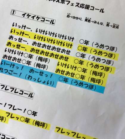今年のスポフェスでは、統一したかけ声で応援することになりました。