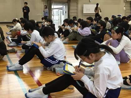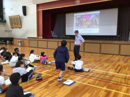 5年生は、体育館で国際理解講座を行いました。
