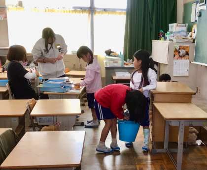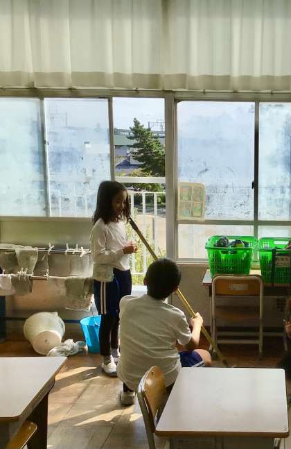 教室清掃では、6年生の後押しのおかげで、てきぱきとやれるようになりました!