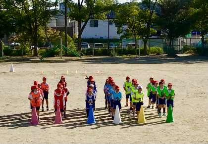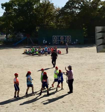 3年生が、初めてビブスを付けてリレー練習を行いました。