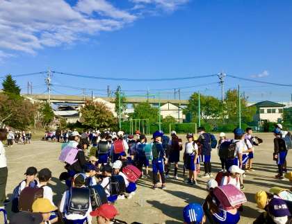 今日は6年生による スポフェスの係打ち合わせ会がありましたので、1年生から5年生の一斉下校でした。