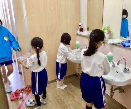 トイレの清掃は 6年生が1年生にやさしく教えています!
