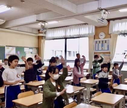 体を左右に動かすところや、エンディングの「ハイハイハイ!」のところをやっていました。