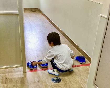 仕上げに、一人でトイレのスリッパをそろえている子に出会いました。