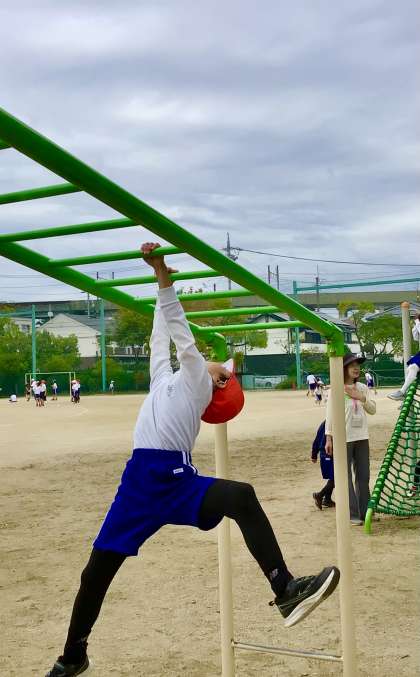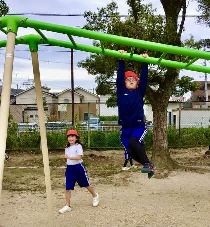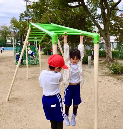 雲梯(うんてい)遊びは、腕力がつくと言われています。
