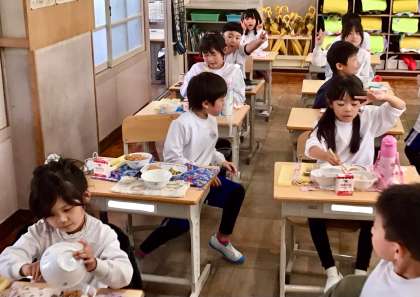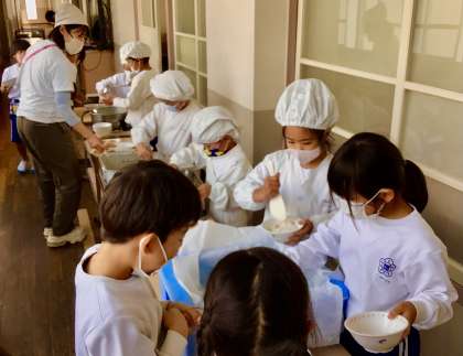 今日は、はじめてのスポフェスに、わくわくした気持ちが感じられる1年生の給食風景をお届けいたします!