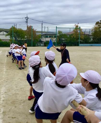 綱引きは、5、6年合同チームで、1組、2組、3組チームの総当たり戦です。