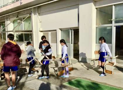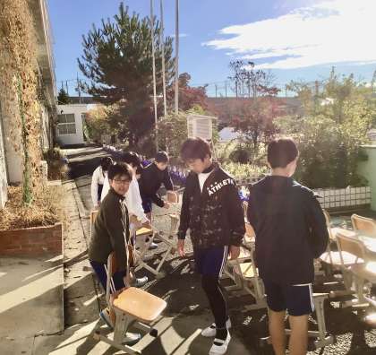 6年生は、器具のチェックに1年生のイス運びと、朝から大いそがしです!