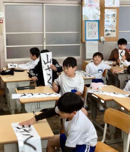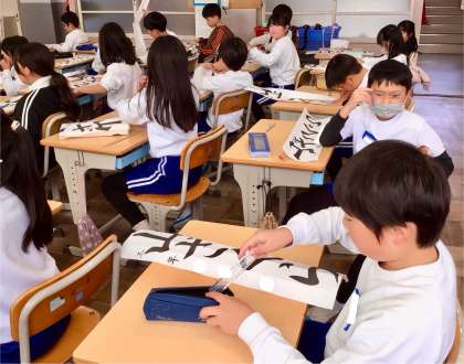 授業の終わりに、先生から 書き初めのお手本が配られました。