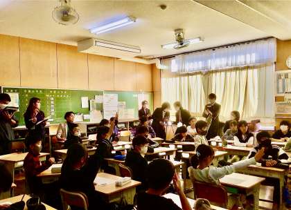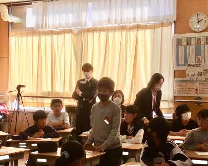 教師は授業終盤で、安藤選手から梅小5年生へのメッセージ動画を流しました。