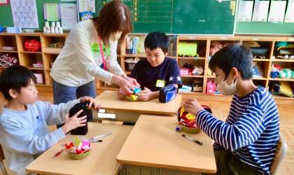 手先を器用に使って、時には教師の助けを借りながらも、自力で作ることができました。