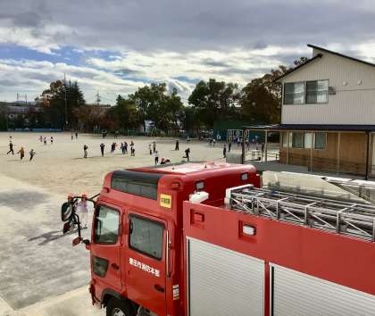 防火講習のため、消防車が来ていました。