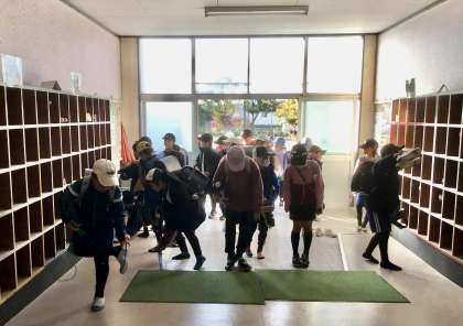 今日は、1、2年生で グランパスボールクリニックが、6年生で 職業人に学ぶ会が行われます。