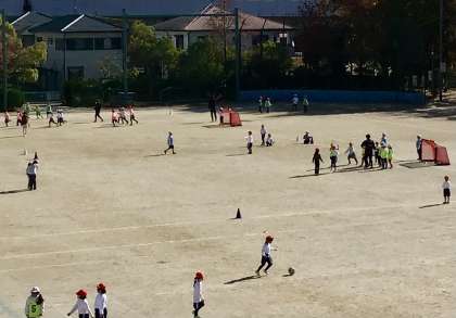 秋晴れのもと、2時間目、1年生のみなさんが、グランパスボールクリニックを行っています!