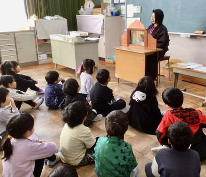 紙芝居ふうに読んでくださるボランティアさんもみえて、今日も子どもたちは本の世界に引き込まれていました。