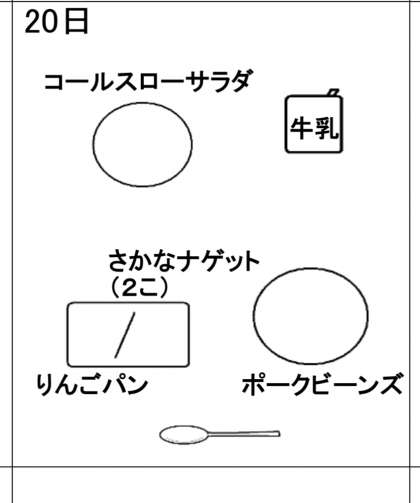 以前お知らせした通り、本日の献立で、さかなナゲットがウインナーに変更になっています。