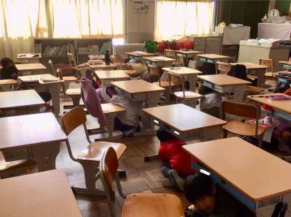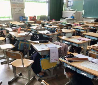 3時間目が終わった休み時間に 抜き打ちシェイクアウト訓練がありました。