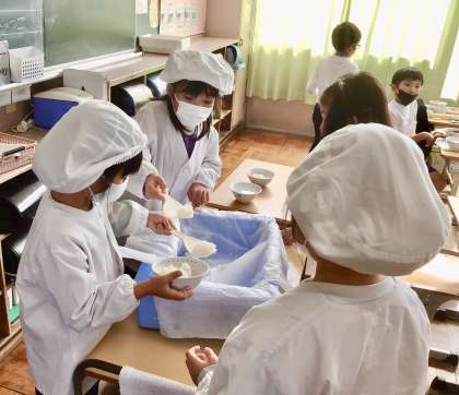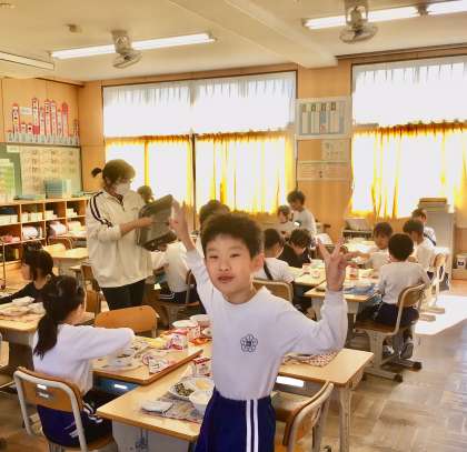 今日は 元気すぎる学年、2年生の給食風景をお届けいたします!