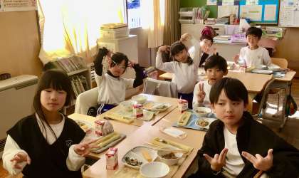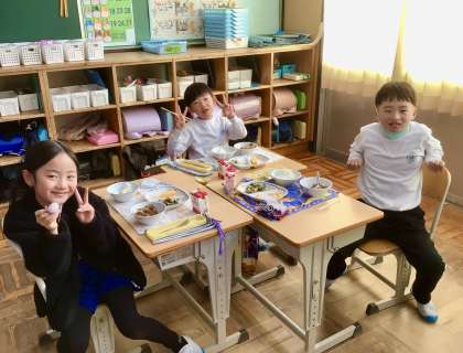 いつもなかよしの3人班、今日も楽しく食べていました♪