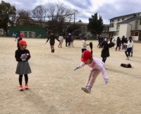 大縄跳びは、4年生が2年生も入れて楽しく跳んでいました。