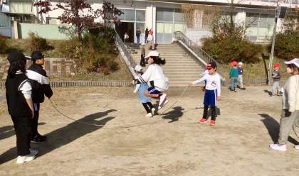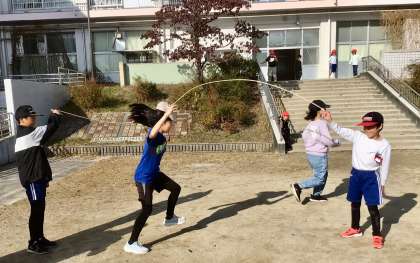大縄跳びは、4年生が2年生も入れて楽しく跳んでいました。