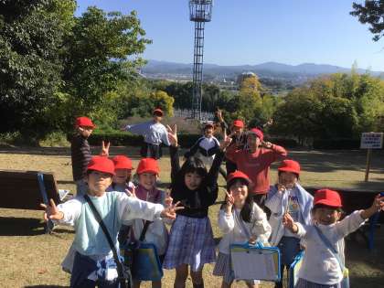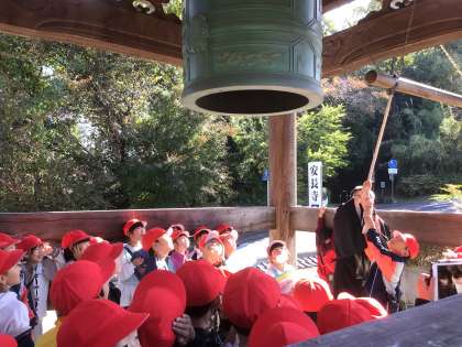 11月14日(金)に生活科「わたしの町はっけん」の学習で安長寺と平芝公園へ町探検へ行きました。はじめに行った安長寺では、お寺で働く方のことについて質問したり、お経を唱える時に使う道具などを見せてもらったりしました。鐘をつく体験をした子もいます。次に行った平芝公園では、梅の木を数えたり、広場でバッタを見つけたりしました。後日、家族で安長寺に行った子もいます。3コースに分かれて行く2回目の探検も楽しみです。
