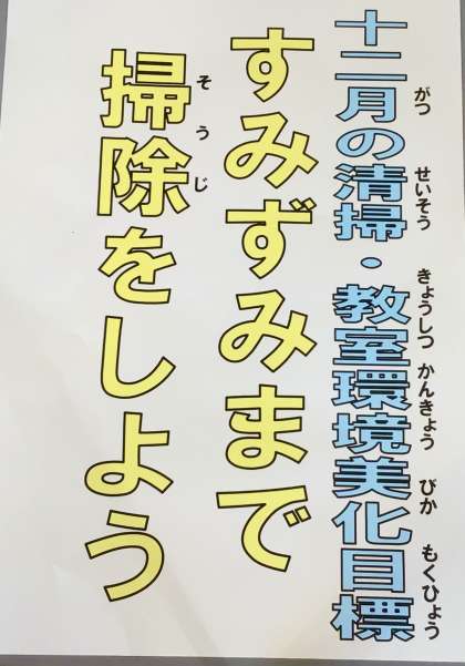 朝の会で、美化委員さんが全クラスを回り、今月の美化目標発表と清掃取り組みチェックをおこなってくれました。