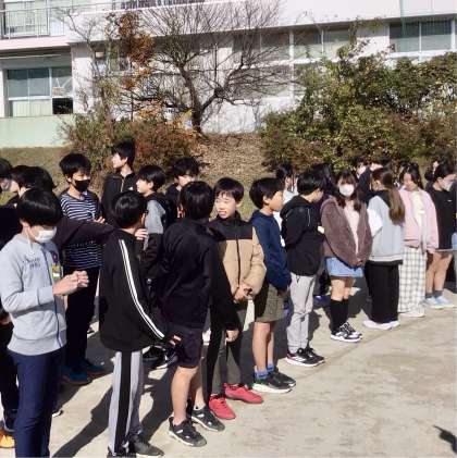 前々から、撮影が延びていた学級写真を運動場で撮りました!