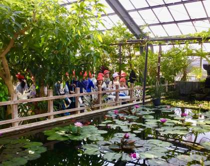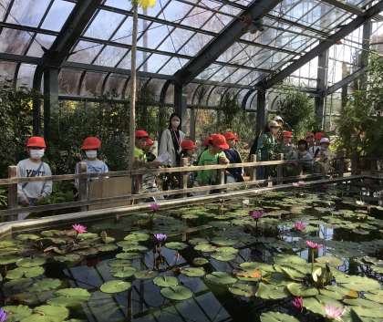 スイレンがいっぱいの池。メダカもいました。