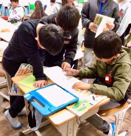 月と星の位置の変化について、学習してきたことを確かめ合っていました。